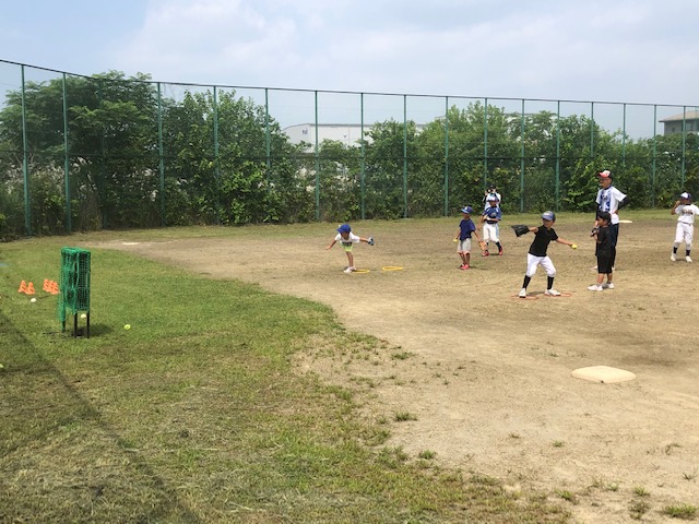 10:00~のパンダクラブに在団生2名に加え、年中さんから小2生まで4名の計6名が参加してくれました。先ずはウォーミングアップ後からのストラックアウトで肩慣らし~守備練習。最後はティーボールで最高に盛り上がり、予定の2時間はあっという間に過ぎました。
